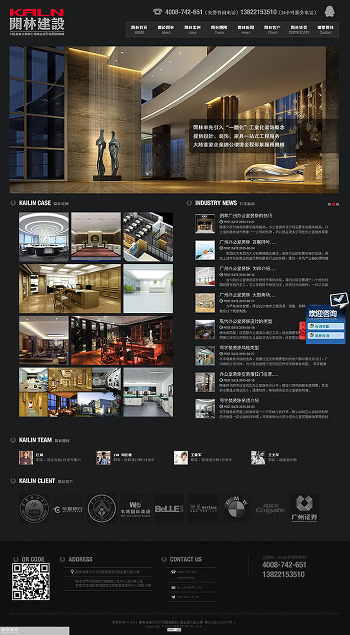 香港开林建设,于1999年在大陆广州成立大陆总部,具有国家建设部颁发的“建筑装饰设计施工一体化二级资质”开林建设全程产业链服务模式形成了一套集体业形象品牌策划、装饰设计、装饰工程、消防工程、机电安装工程、弱电、智能化系统工程、净化空间工程、办公家具设计生产于一体的办公能+品牌形象传播的整体解决方案。