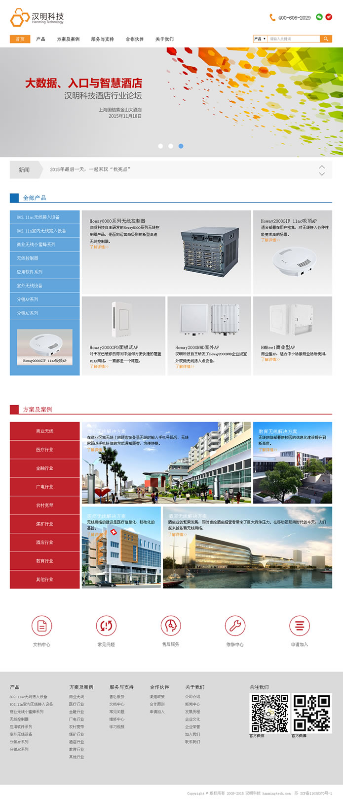 汉明科技始终聚焦WLAN技术领域创新进步,以覆盖WLAN全系列的产品线为积累,逐步形成“无线应用系统一体化”解决方案提供商,并迅速得到广泛应用,占领了WLAN发展潮流的制高点。