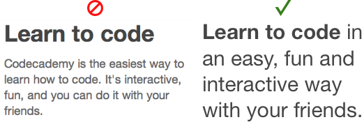 而对这个议题,UX Movement则指出,如果要建立独特的卖点,就要在一句话把重点讲完。要容易阅读,不要咬文嚼字的,让读者一眼就看出诉求是什么;例如coacademy的例子: