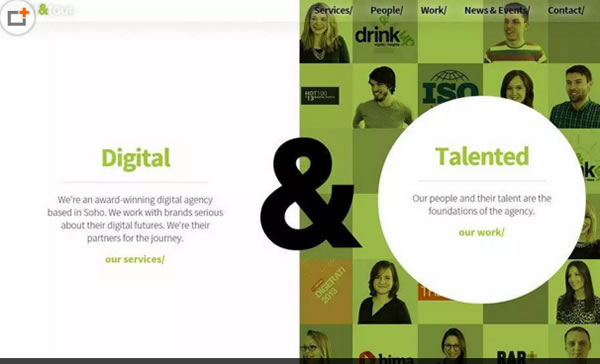 原因之二,有时你要表现出一种重要的两重性。以Eight and Four网站为例。他们在此要表达的是,他们的核心竞争力来自植根数字领域,还有多才多艺的员工。这两点成就了他们。通过屏幕分割来表现这一点,是种令人愉快的方式。