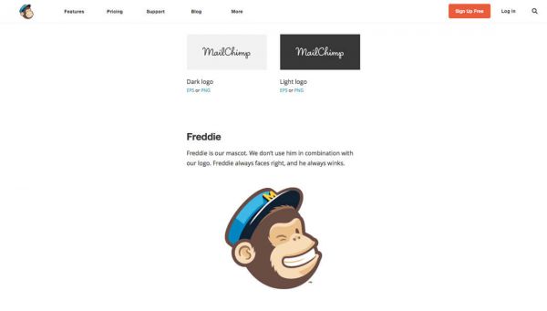 所以,你同外界耐以沟通的每一个文字都应当保持一致的语调和语气。重新回到 MailChimp 这个案例,如果你仔细审读会发现他们同样力图通过语言来构建独特的品牌形象。在风格指南中提及他们的吉祥物的时候,他们是这么说的:“Freddie 是我们的吉祥物。我们并不会让他同我们的LOGO结合到一起,Freddie 永远向右看,也一直向你眨眼。”