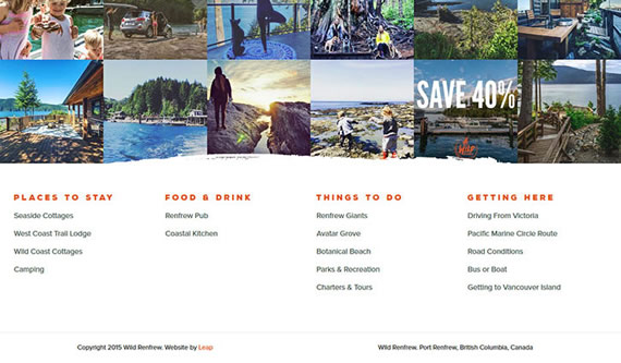 大多数页脚都是以深色背景为主的,有些是直接用插画做背景,无论哪个,你要确定的是页脚看起来是和内容分离开的,这样才不会混乱,保证了视觉上的层次性。