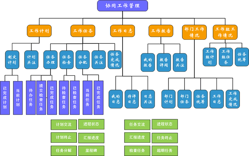 OA协同工作管理系统不同于一般OA软件的工作计划、工作任务、工作日志模块,它的核心是计划、任务、检查、汇报、交流、日志和报告。它是运用了先进的管理理念和管理技术,巧妙的将各环节融合成为一个整体,使组织管理各单元精确、高效、协同和持续运行。